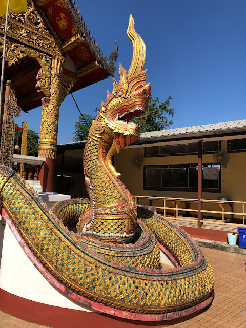 Most of the wats I had seen had naga balustrade, but here and also at Wat Chetupon, I was fascinated by the coiled naga balustrade. The naga coil and the tail extends upto the pillar of viharn.