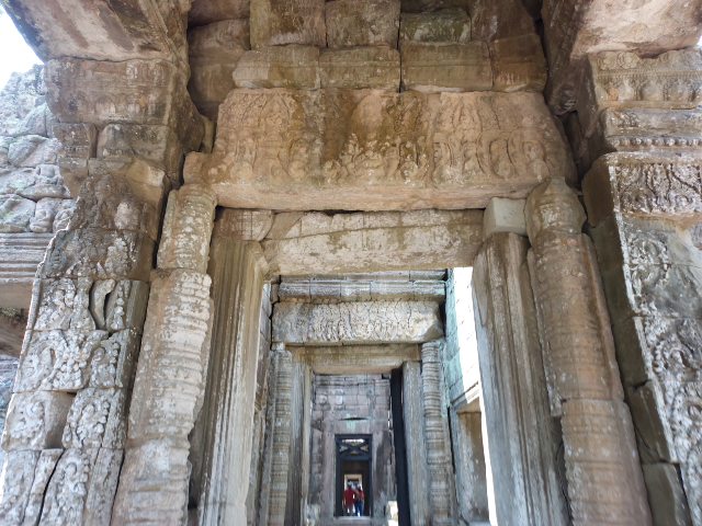 enclosure 2 wall on southern side The lintels shows carved praying ascetics or Rishis. Past this gopura is the Hall of dancers which is a part of enclosure 2.