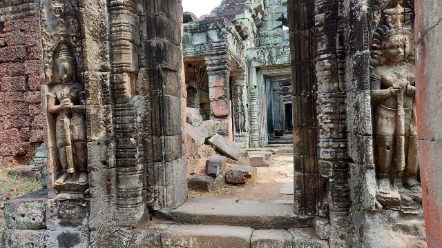 This wall of enclosure 2 contains the sanctum sanctorum, libraries, Hall of Dancers, also the north and west satellite temples. The south satellite temple is still in process of restoration.